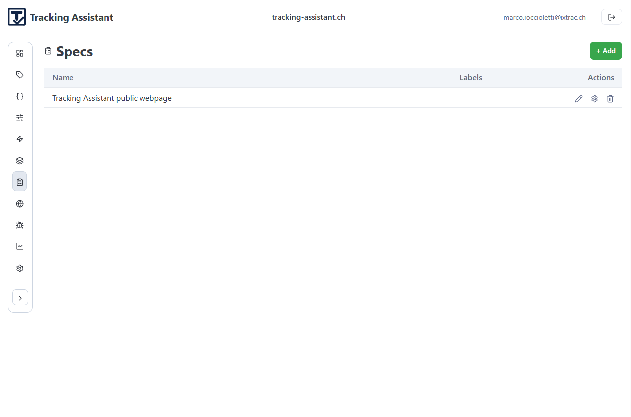 Use the Specs tab to turn tracking intent into an explicit structure.