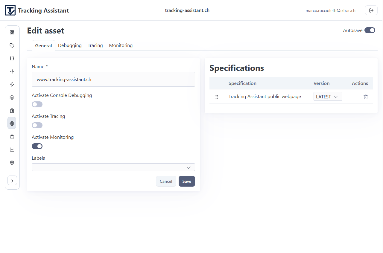 - Use Assets to scope and activate tracking per runtime target.