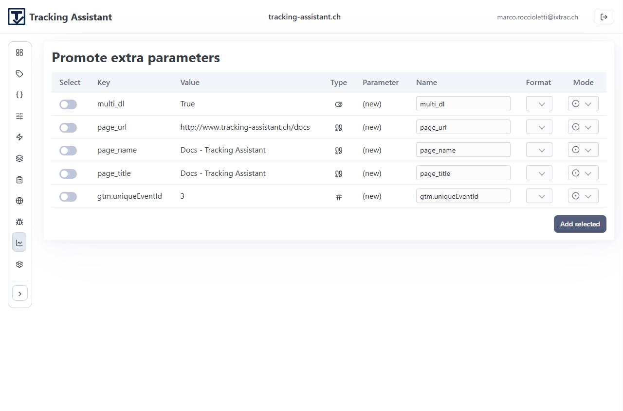 - Promote extra parameters for known events.